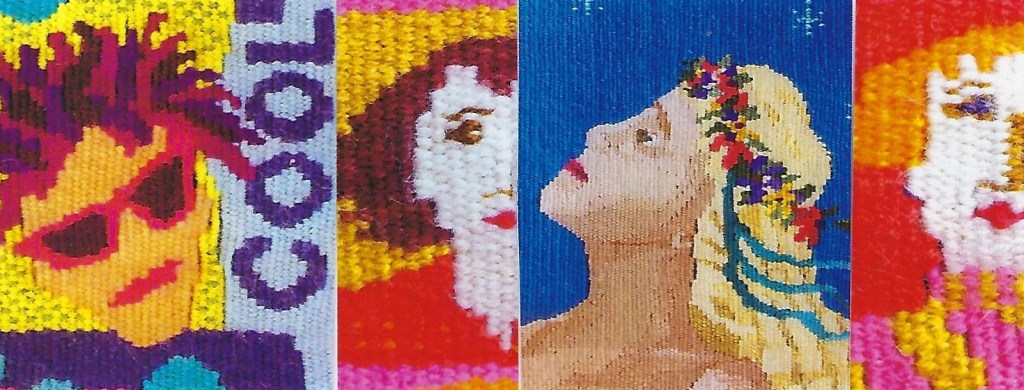 This process of weaving a tapestry, of choosing colourful yarns and building lines, shapes and imagery continues to absorb my imagination forty years later.